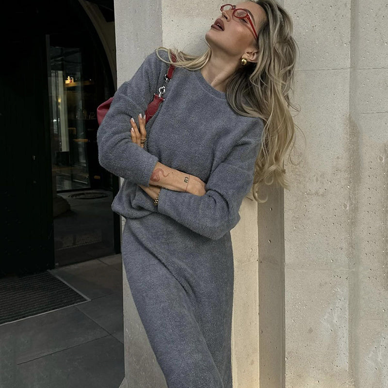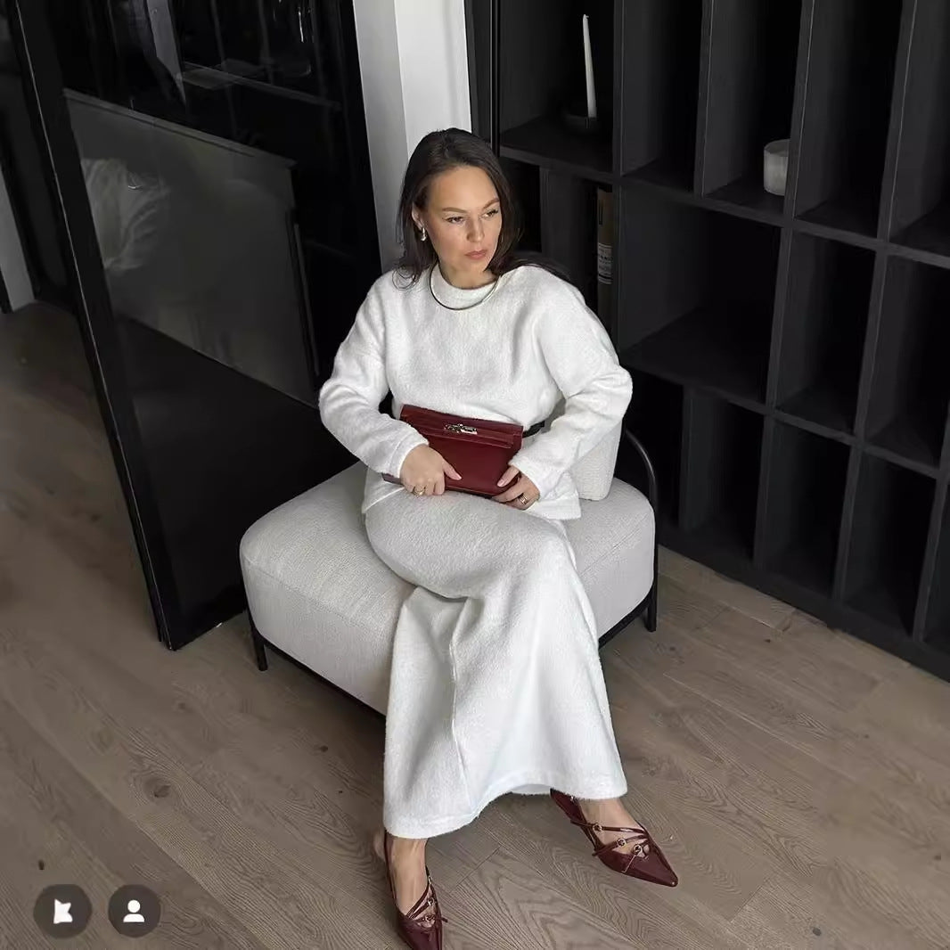 Pulover elegant confortabil pentru femei cu set de fustă evazată