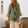 Decolteu fermecător cu volane: Decolteul delicat cu volane adaugă o notă de eleganță casual, accentuând decolteul cu detalii moi, feminine, care completează o varietate de ținute.