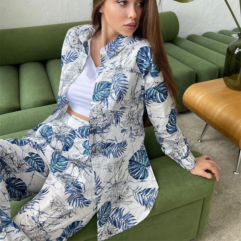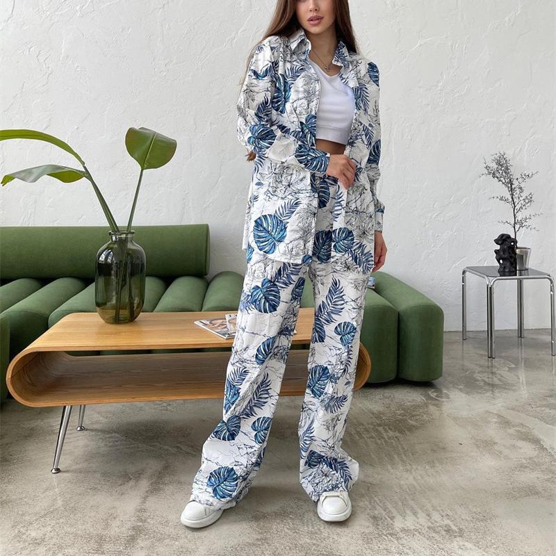 Pachet inclus:1*Casual Floral Shirt Wide Leg Pants Set