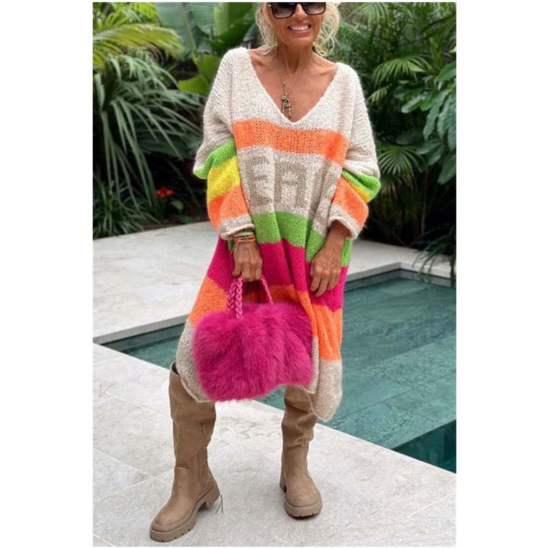📦Rochie pulover cu monogramă, cu decolteu în V și blocuri de culori