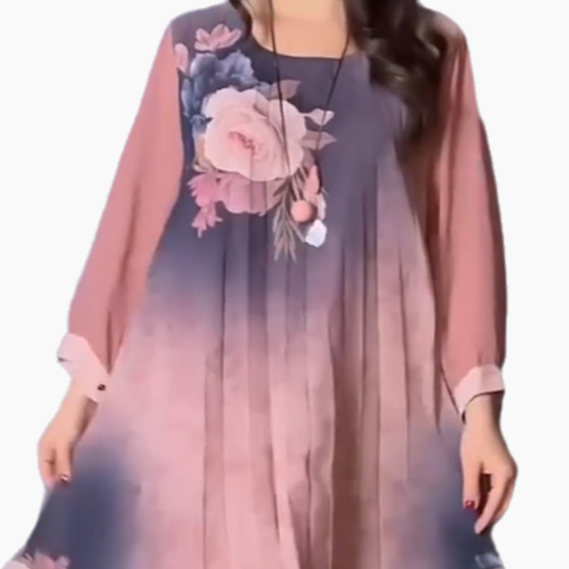 Rochie cu Imprimeu Floral și Mâneci Din Plasă pentru Femei, Cu Guler Rotund
