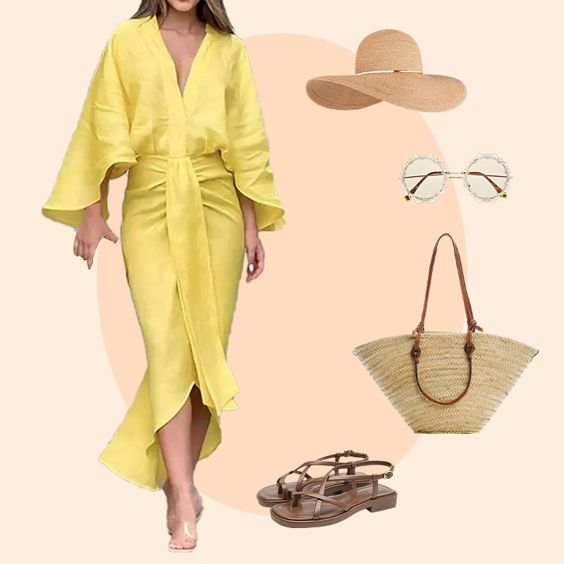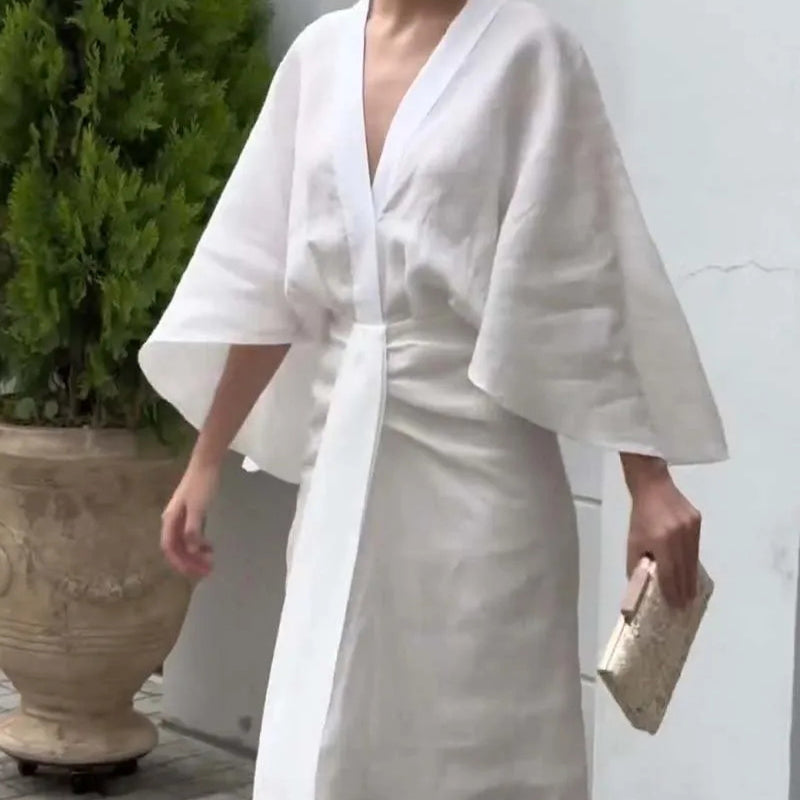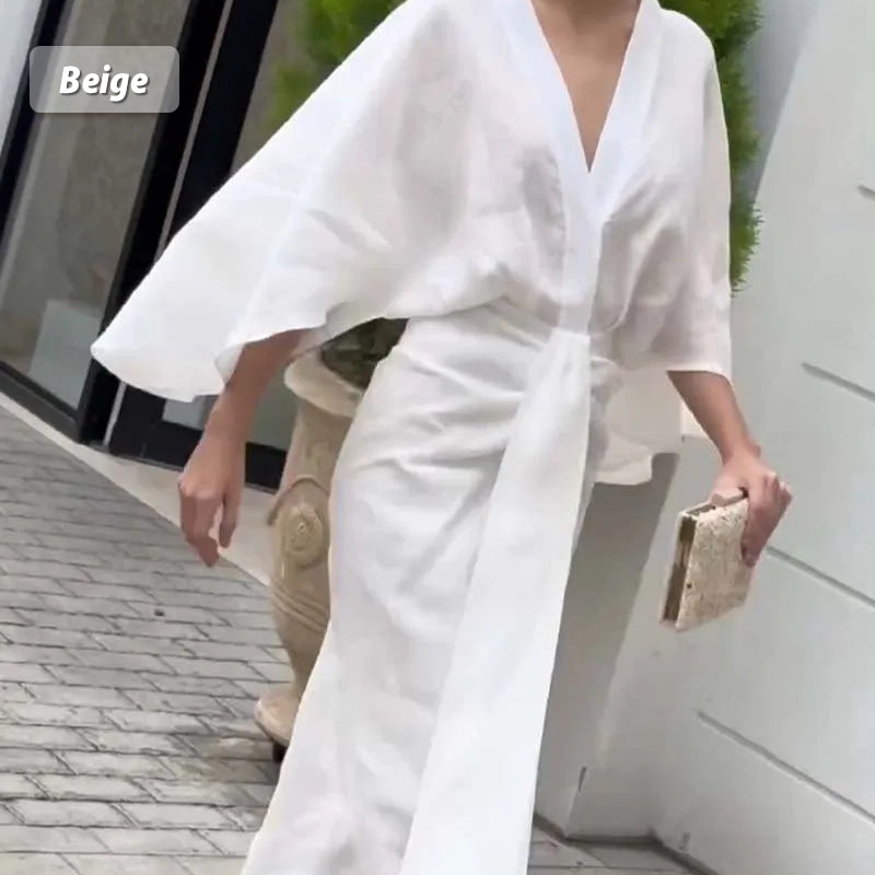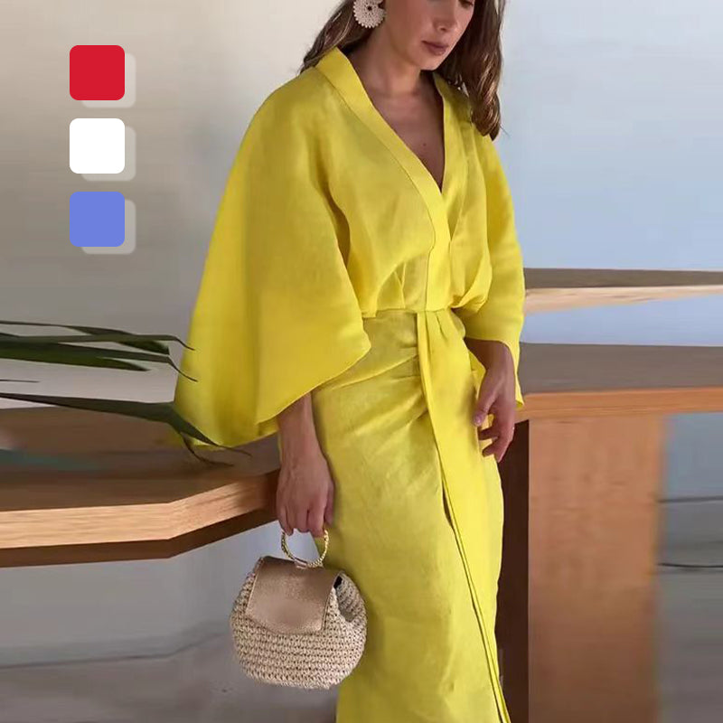 💕Rochie plisată cu decolteu în V de culoare solidă cu tiv în coadă de pește