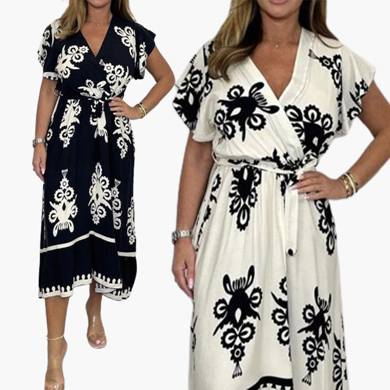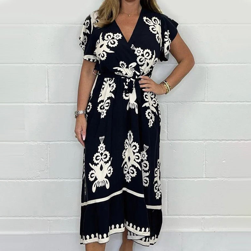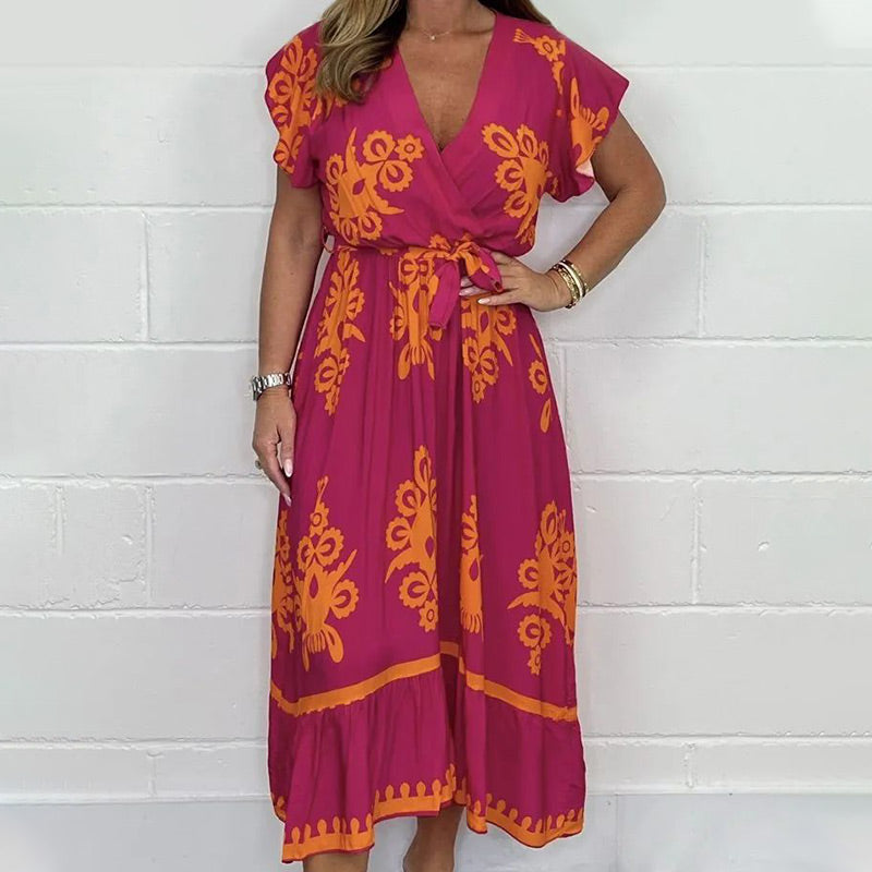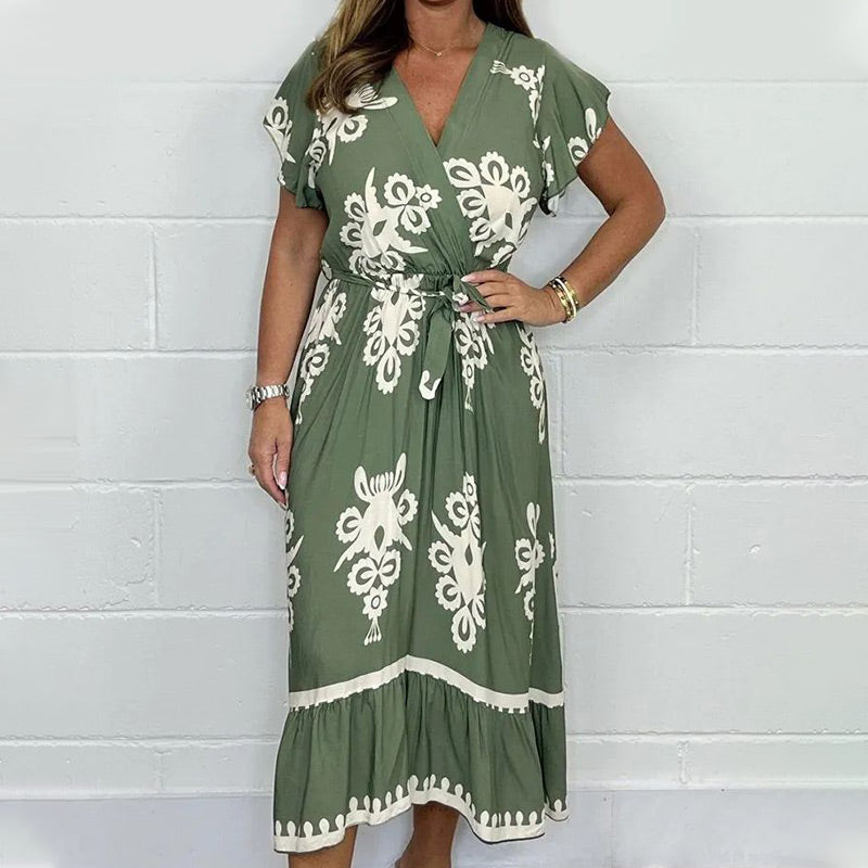 DESIGN FLATTERING: Această rochie are o siluetă care flatează silueta, cu decolteu în V și mâneci cu frunze de lotus care adaugă o notă de eleganță garderobei tale de vară.