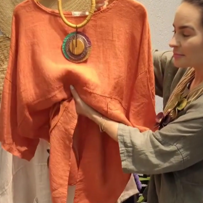 🔹 Fabricat dintr-un amestec de in natural, acest top respirabil este alegerea ideală pentru zilele călduroase – moale la atingere, dar rezistent în timp.