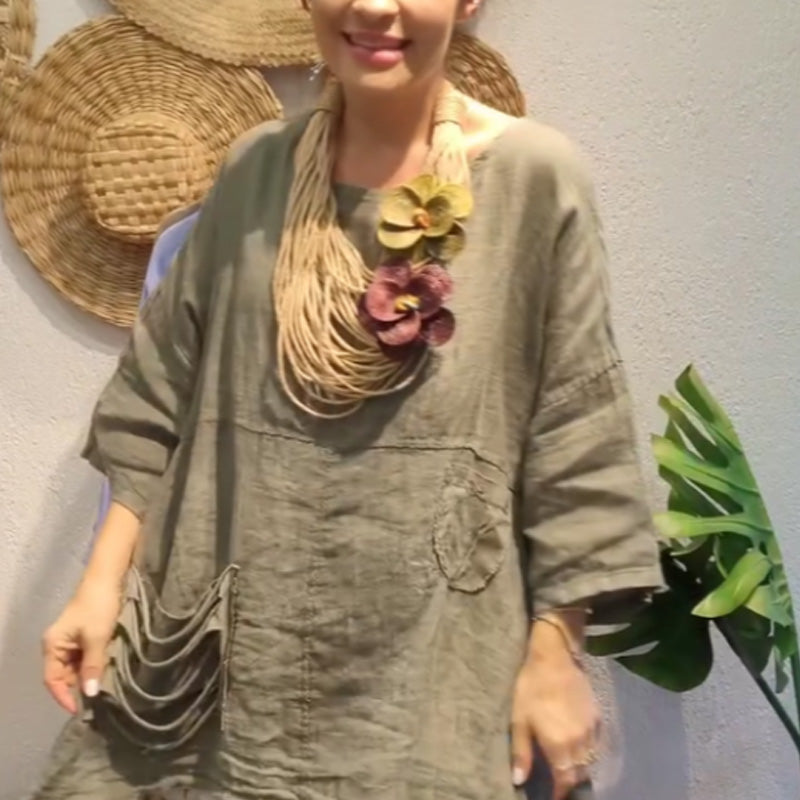 MATERIAL RESPIRABIL ȘI UȘOR – Confectionat dintr-un amestec de in aerisit, acest top permite circulația aerului, menținându-te proaspătă și uscată în zilele călduroase. Textura sa naturală și finisajul moale oferă un confort plăcut la atingere.