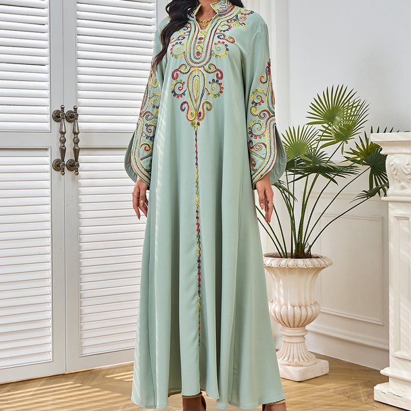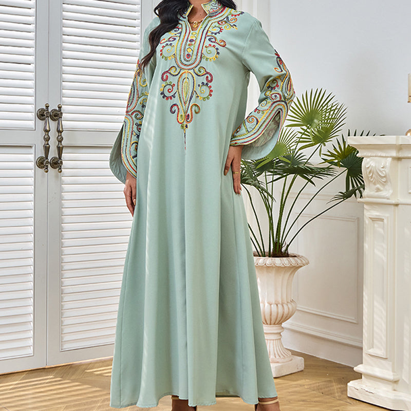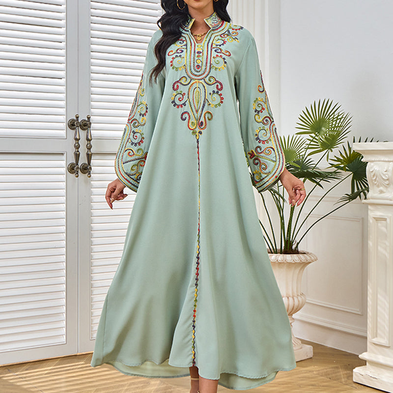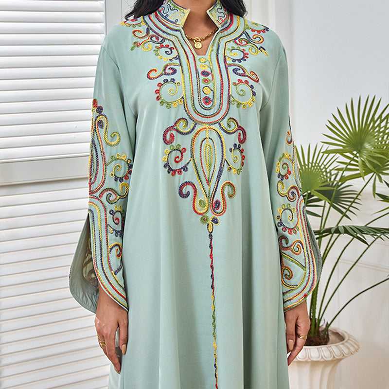 BRODARE REFINITĂ: Broderia complicată și delicată împodobește rochia, adăugând o notă de rafinament rafinat. Modelele brodate completează nuanța de verde deschis, creând un design vizual uimitor și atrăgător.