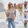 1 x V-Neck Floral Print Ruffled tricou cu mânecă scurtă