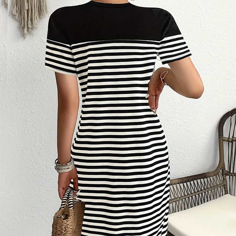 Rochie lejeră cu decolteu rotund și dungi contrastante