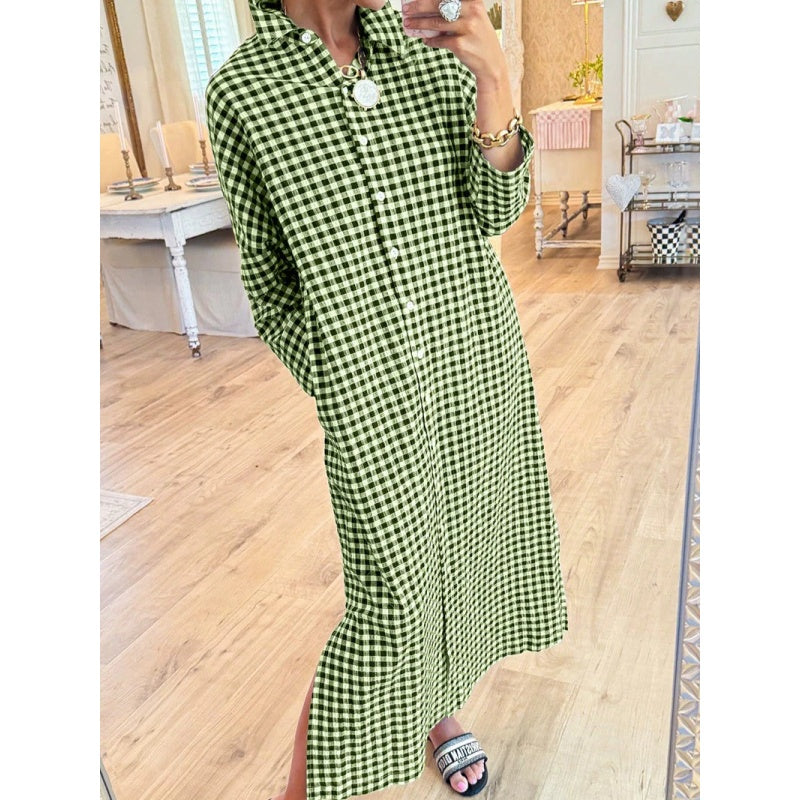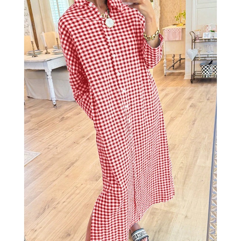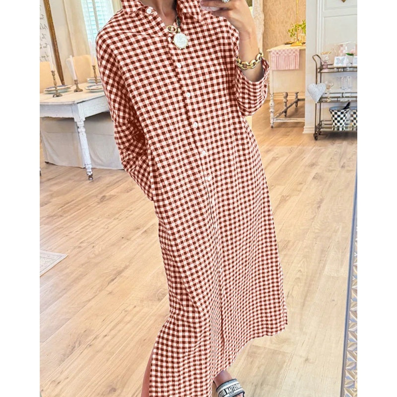 1 x Rochie-cămașă lungă cu croială lejeră și carouri pentru femei