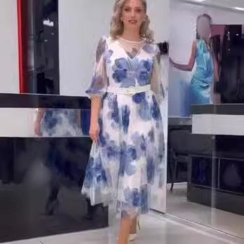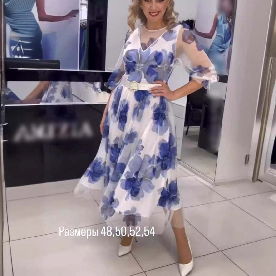 Pachetul include 1× Rochie din șifon imprimată albastră și albă