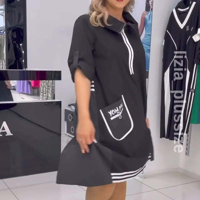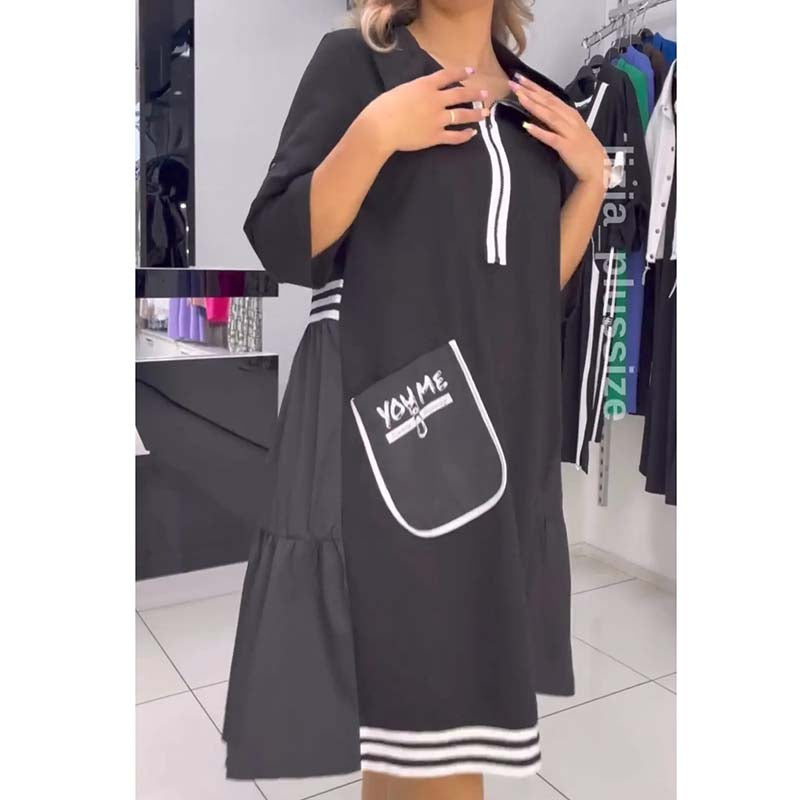 DESIGN SPORTY CASUAL: Această rochie întruchipează o vibrație sporty casual, perfectă pentru purtarea zilnică. Ținuta relaxată și croiala elegantă o fac ideală pentru cei care apreciază confortul fără a sacrifica moda.