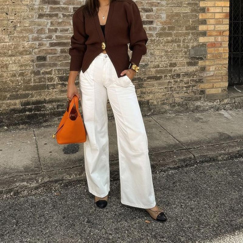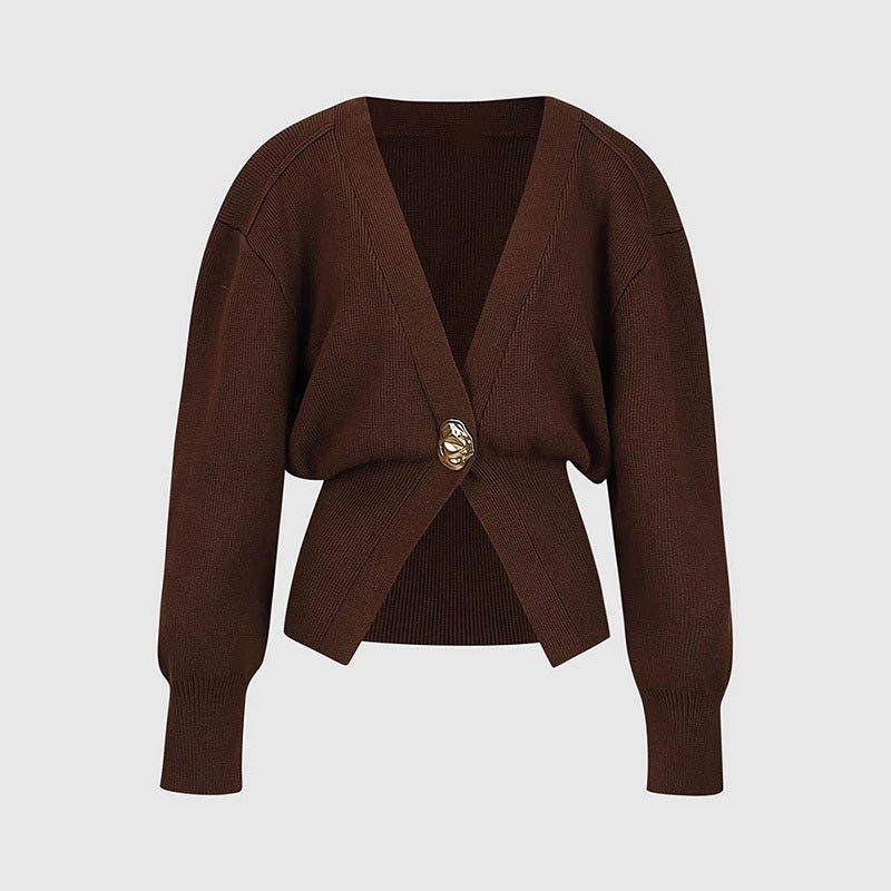 ÎNCHIDERE CHIC CU UN SINGUR NASTURE: Designul elegant cu un singur buton adaugă o notă modernă siluetei cardiganului clasic, făcându-l ușor de îmbrăcat pentru orice ocazie, de la ieșiri casual la evenimente formale.