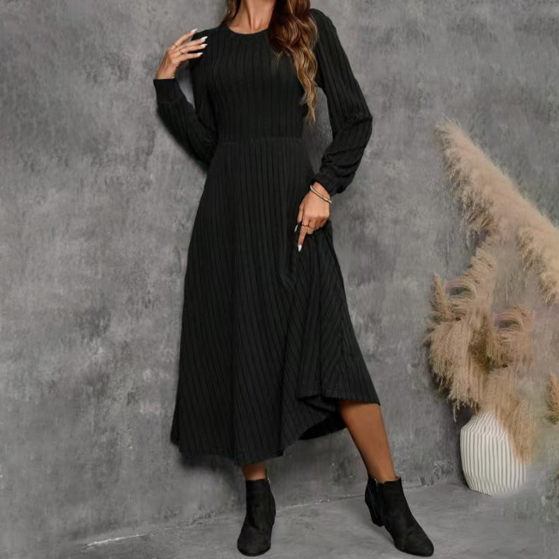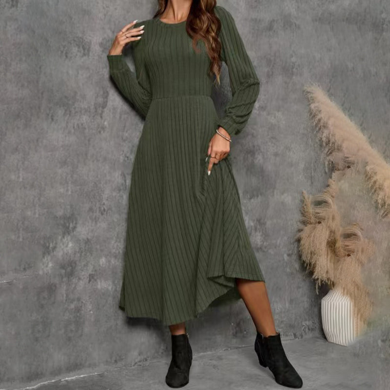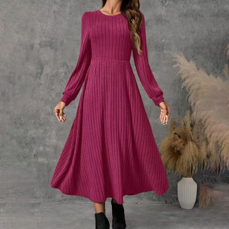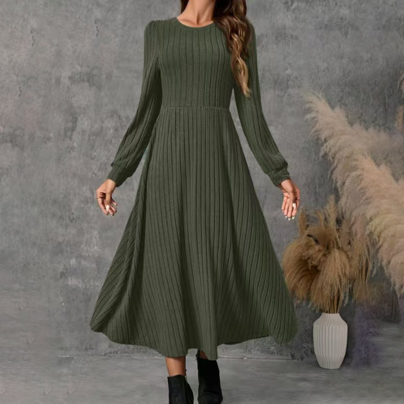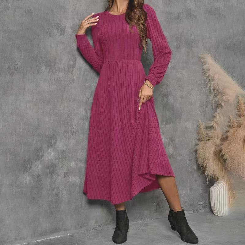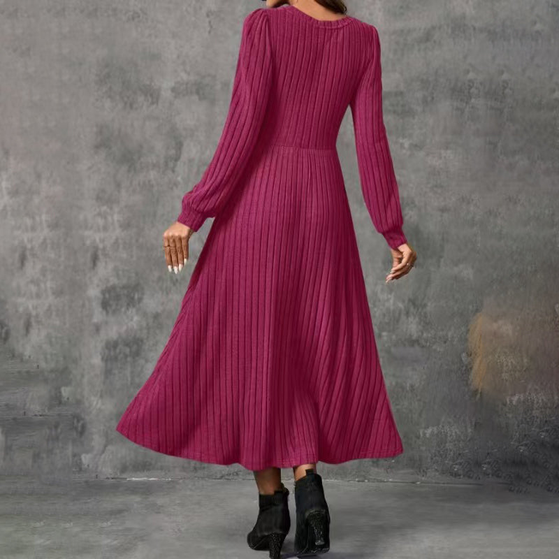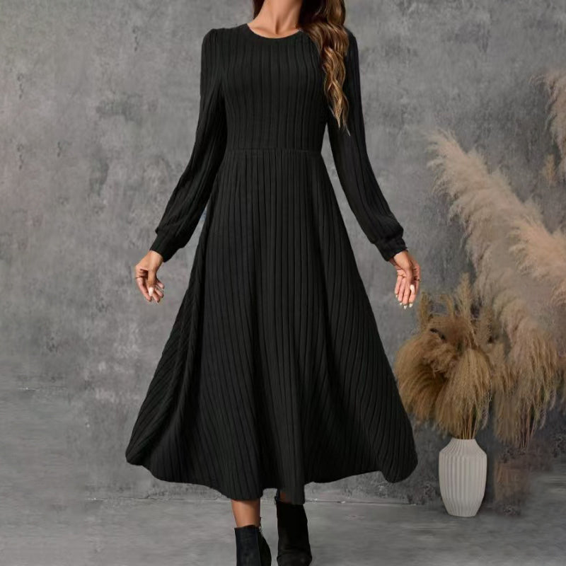 Rochie elegantă cu mâneci lungi și nervuri pentru femei