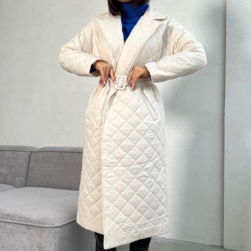 Pachetul include 1 * Palton cald pentru femei Diamond Check cu curea