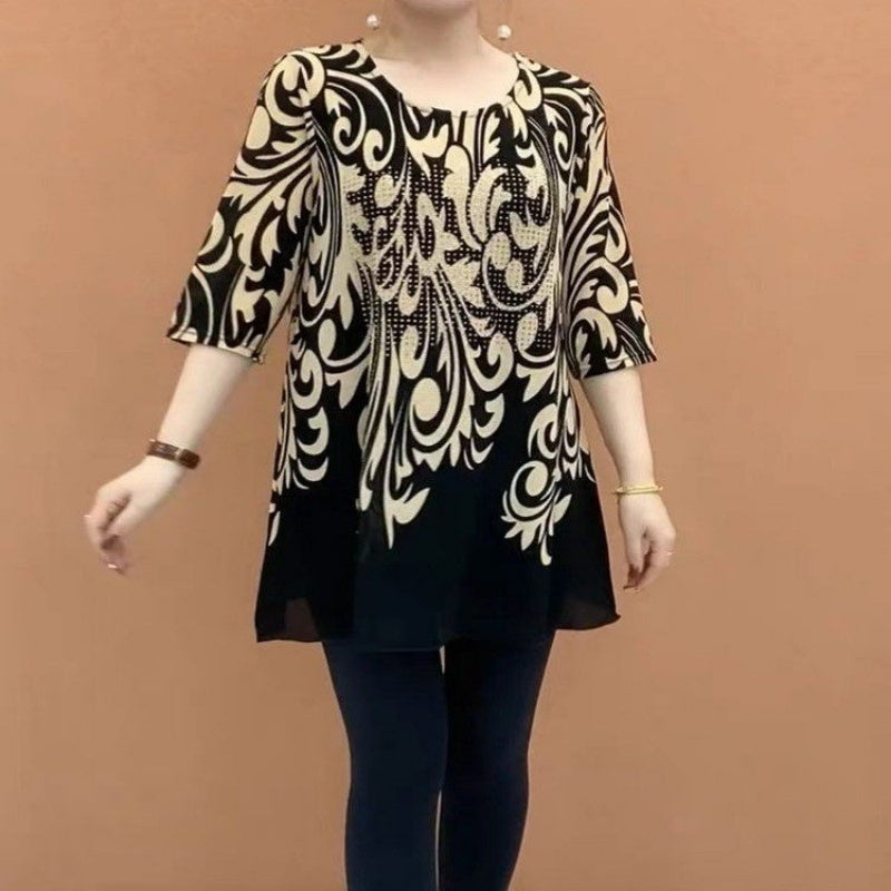 ✨Plus Dimensiune vrac imprimat rotund gât femei Top
