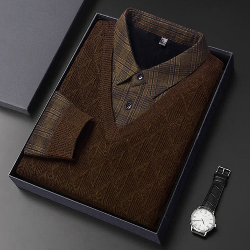 M-4XL👔Pulover tricotat cu două piese cu rever pentru bărbați