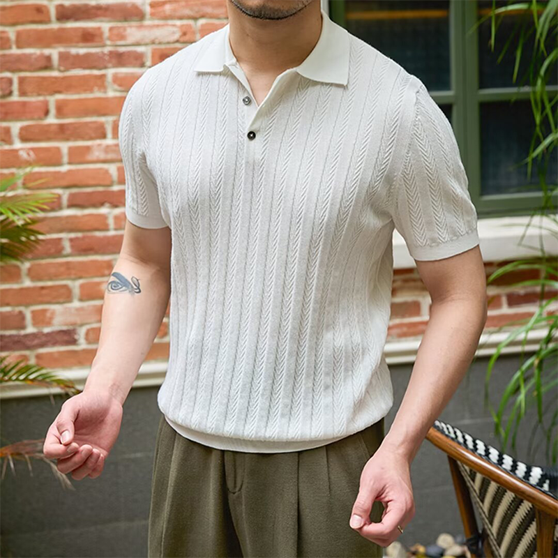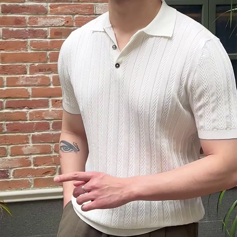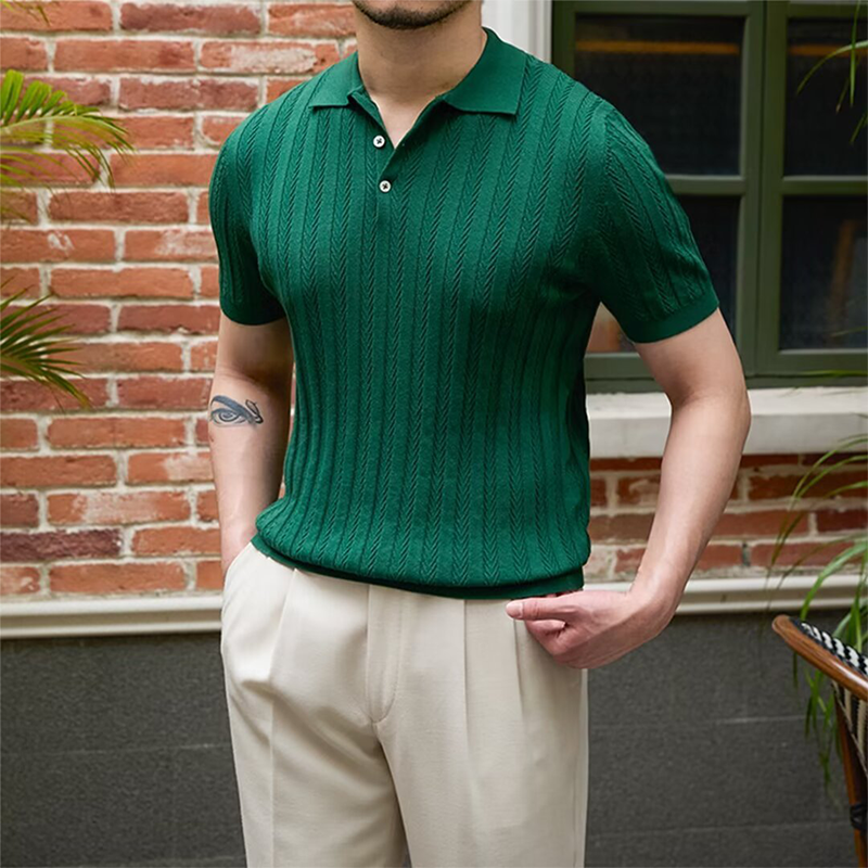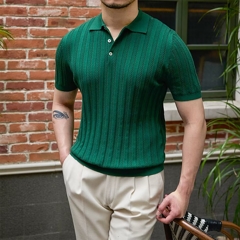 👑Tricou clasic casual pentru bărbați, cu guler revere și mânecă scurtă, culoare uni