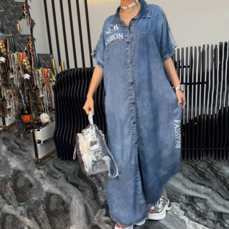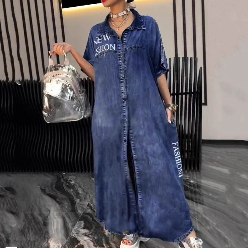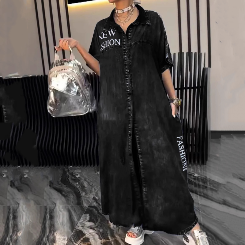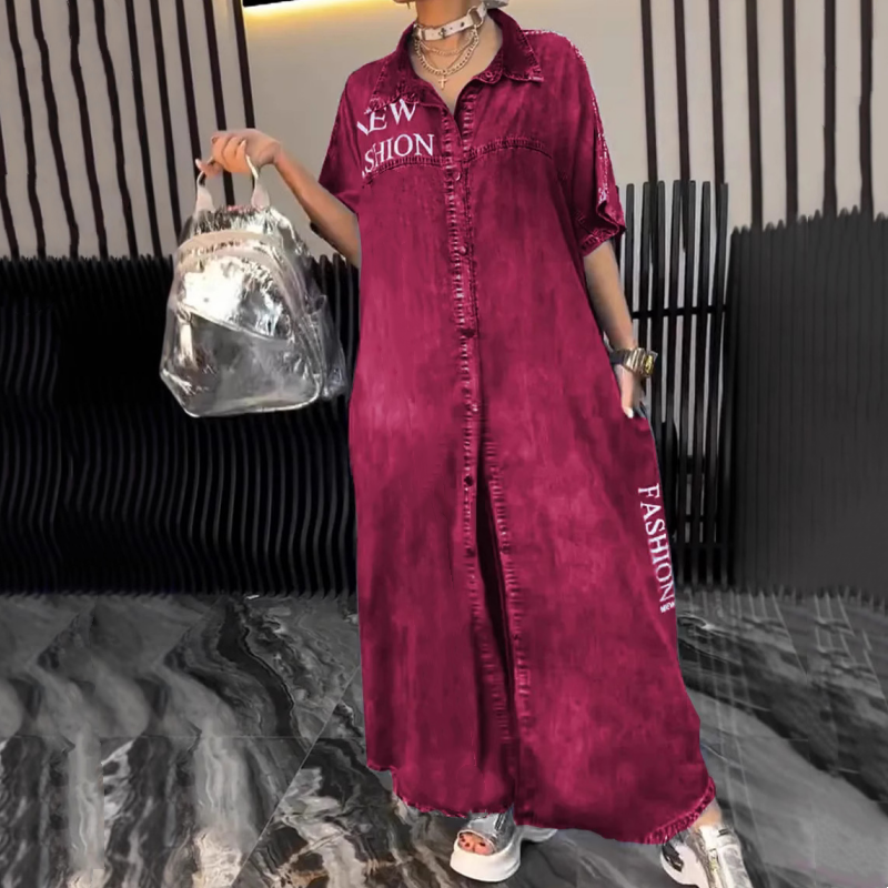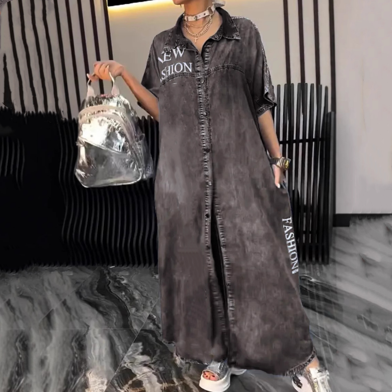 Pachetul conține: 1 × Rochie lungă casual cu guler și nasturi pentru femei