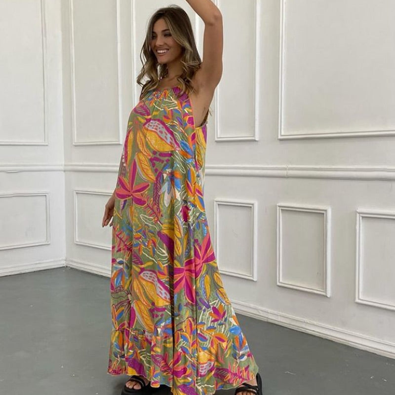 Pășește în stil și confort cu rochia lungă imprimată fără mâneci. Această rochie la modă are un imprimeu uimitor și oferă un amestec perfect de eleganță și ușurință pentru orice ocazie.