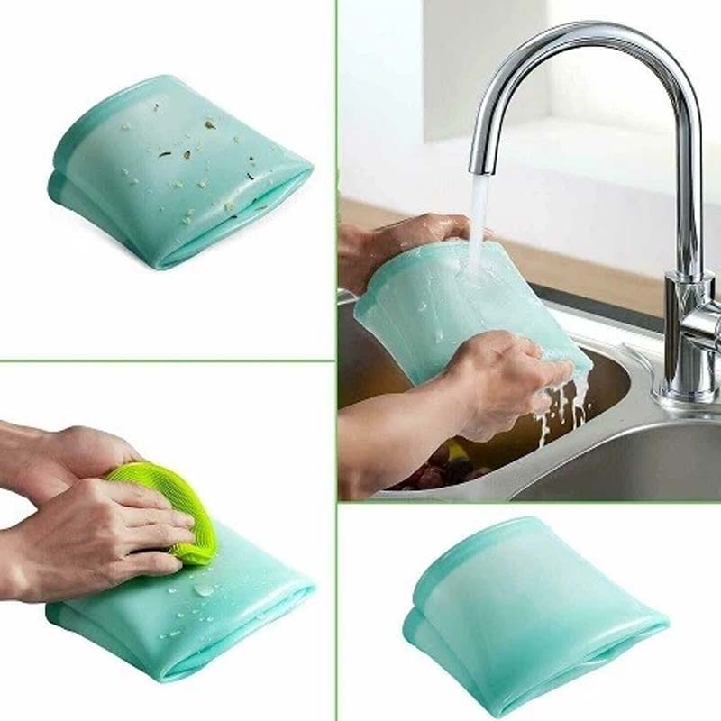 UȘOR DE CURĂȚAT – Aceste pungi din silicon sunt proiectate pentru curățare fără efort. Această ușurință în întreținere încurajează reutilizarea regulată, asigurând că produsul rămâne igienic și practic, sprijinind o rutină mai sănătoasă și eficientă în bucătărie.