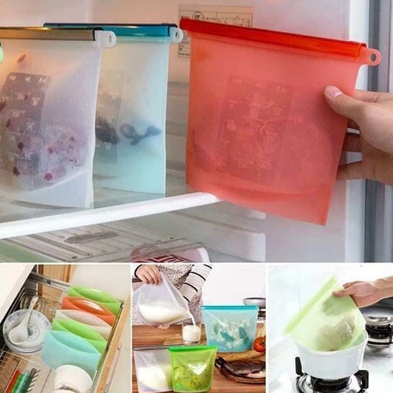 Pungi groase din silicon reutilizabile pentru alimente