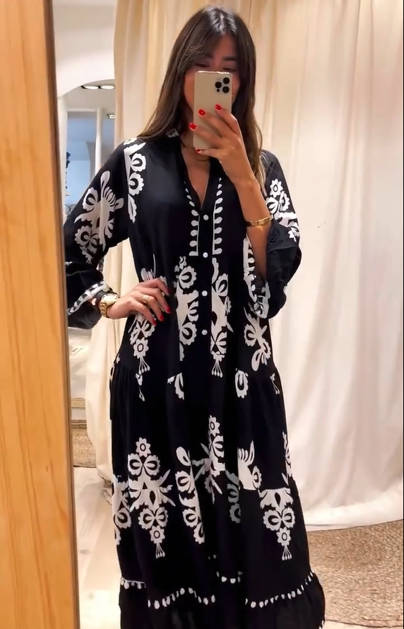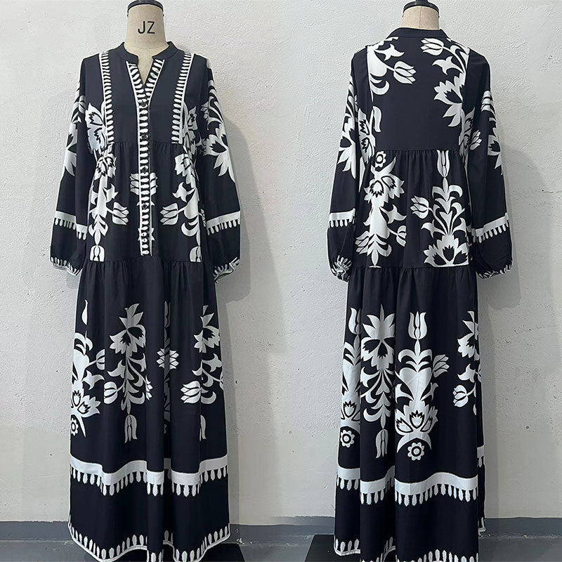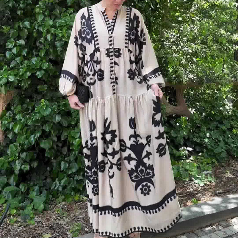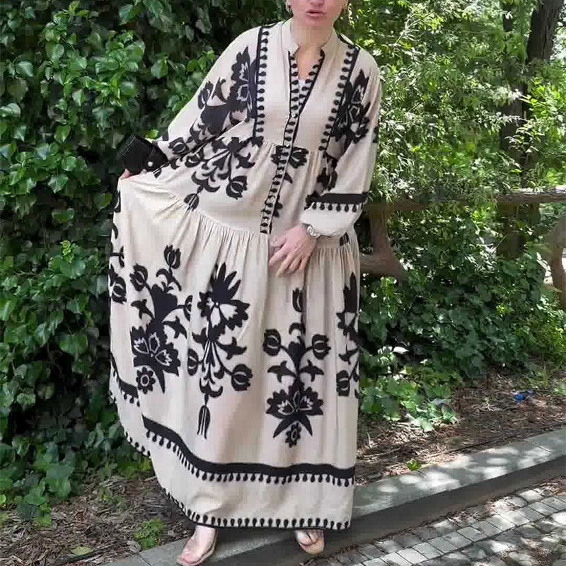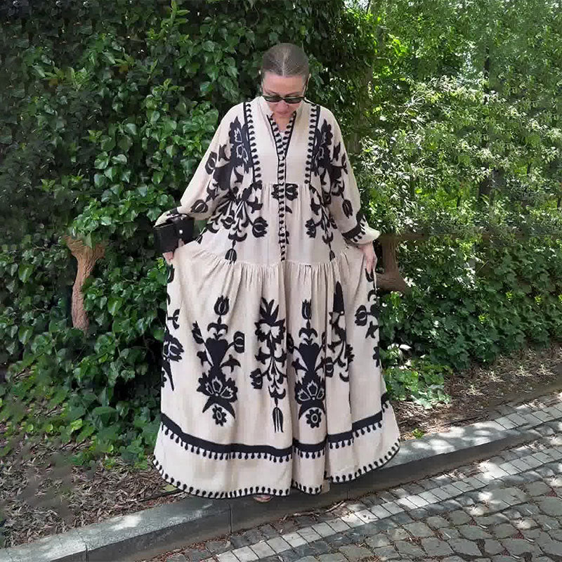 INCLUSIVE SIZE OPTIONS: Available in sizes S to 2XL, this dress offers a loose, generous fit. It is designed to flatter a variety of body types, ensuring that every woman can enjoy the beauty and comfort of this retro maxi dress.