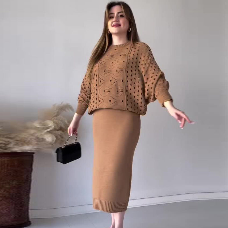 💖Set tricot Openwork cu mânecă lungă și rochie fără mâneci