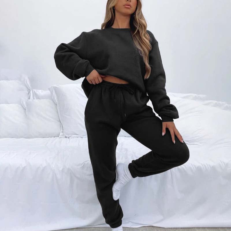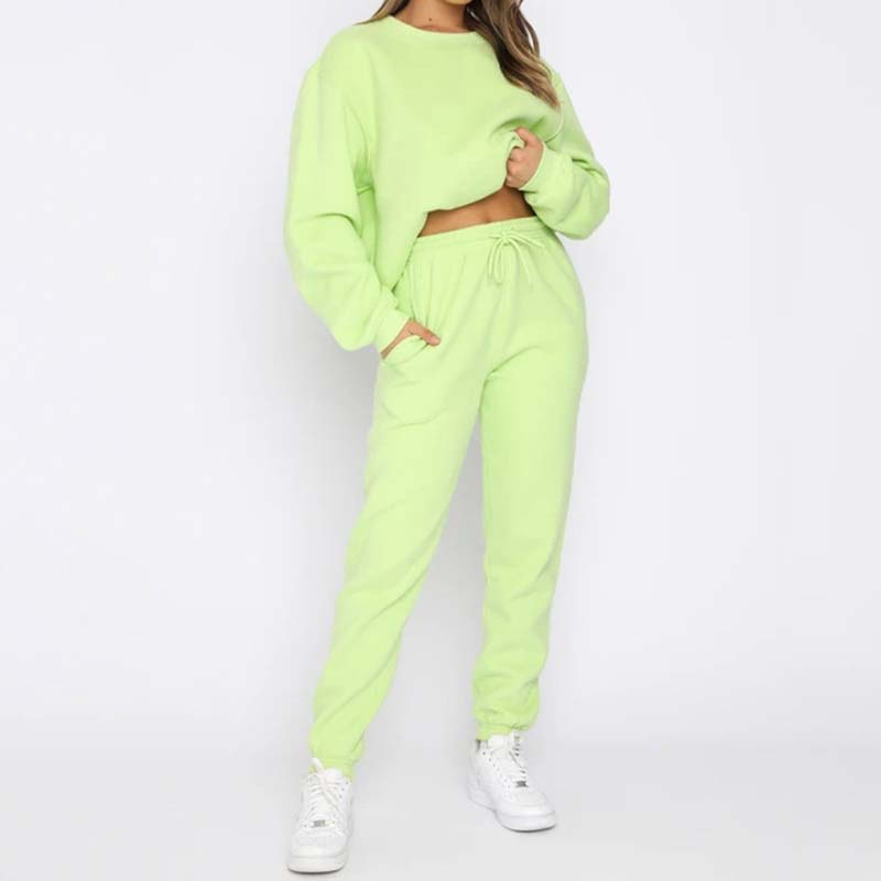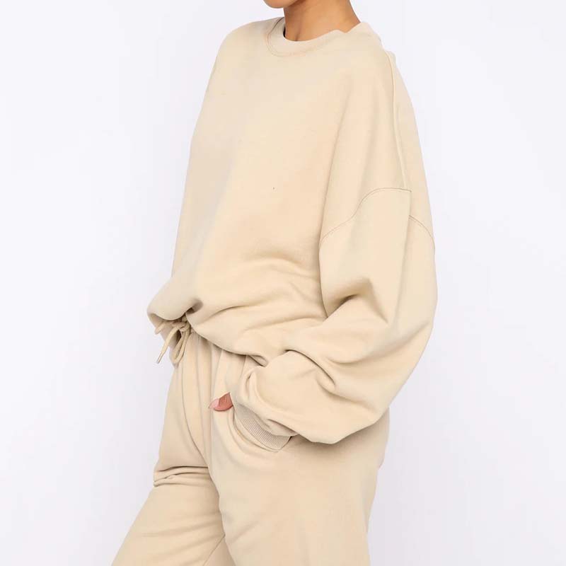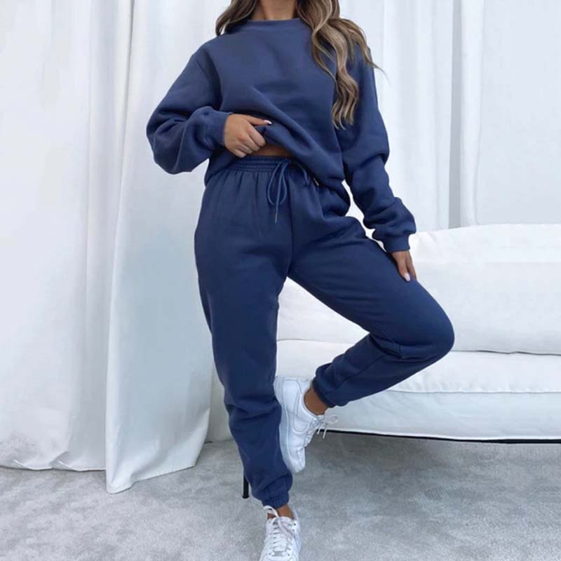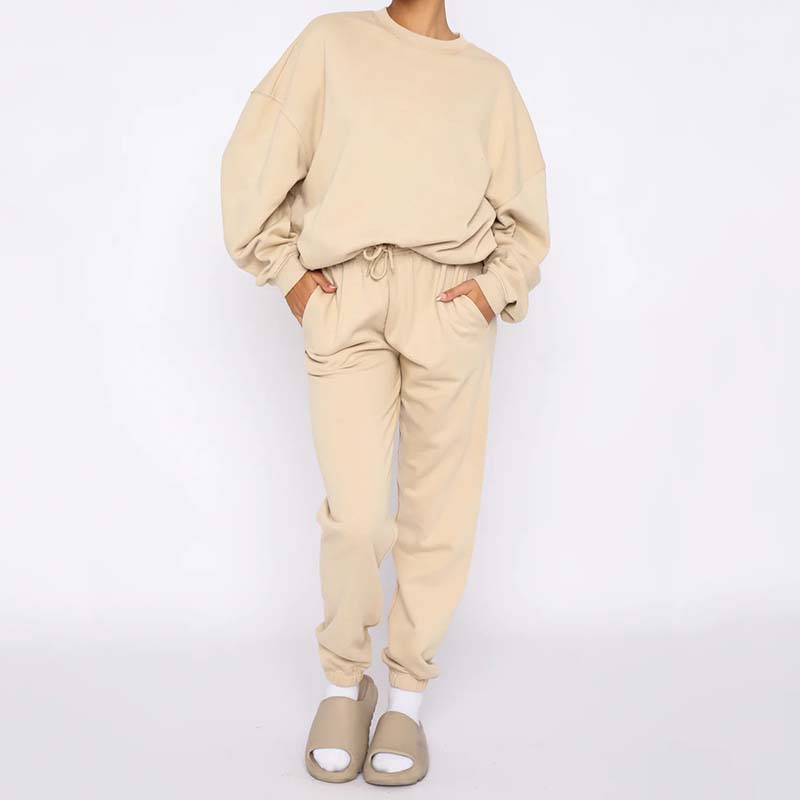 Pachetul include: costum confortabil din două piese de culoare solidă pentru femei.