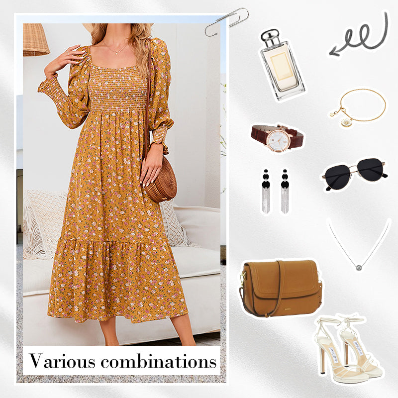 Imprimeu floral șic: Imprimeul floral frumos conferă acestei rochii un aspect moale, feminin, perfect pentru ieșiri casual sau ocazii speciale.