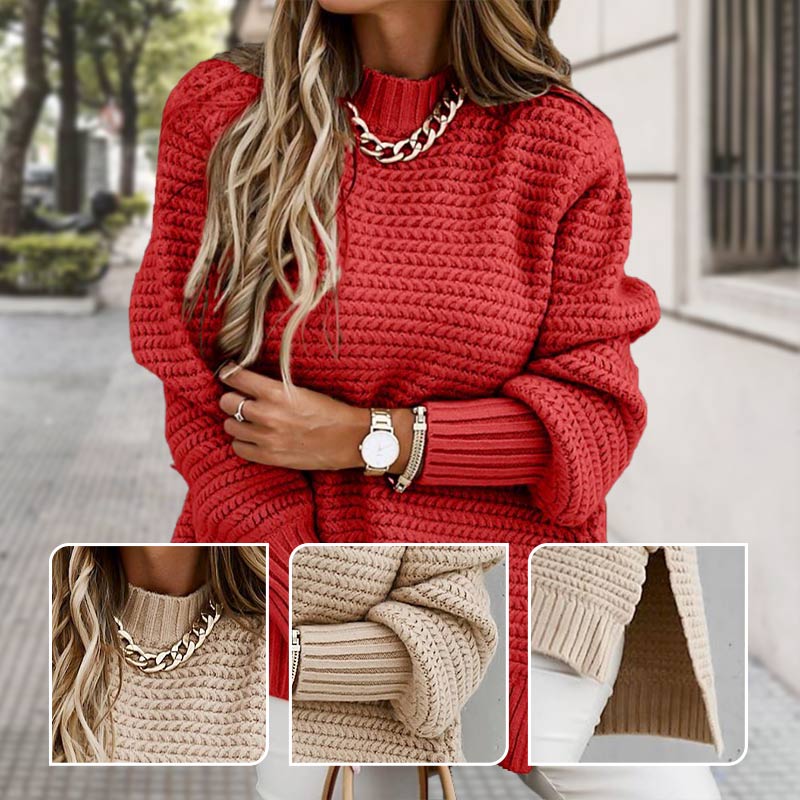 🌹 PULOVER SIMPLU TRICOTAT CU FANTĂ LATERALĂ ȘI DECOLTEU ROTUND