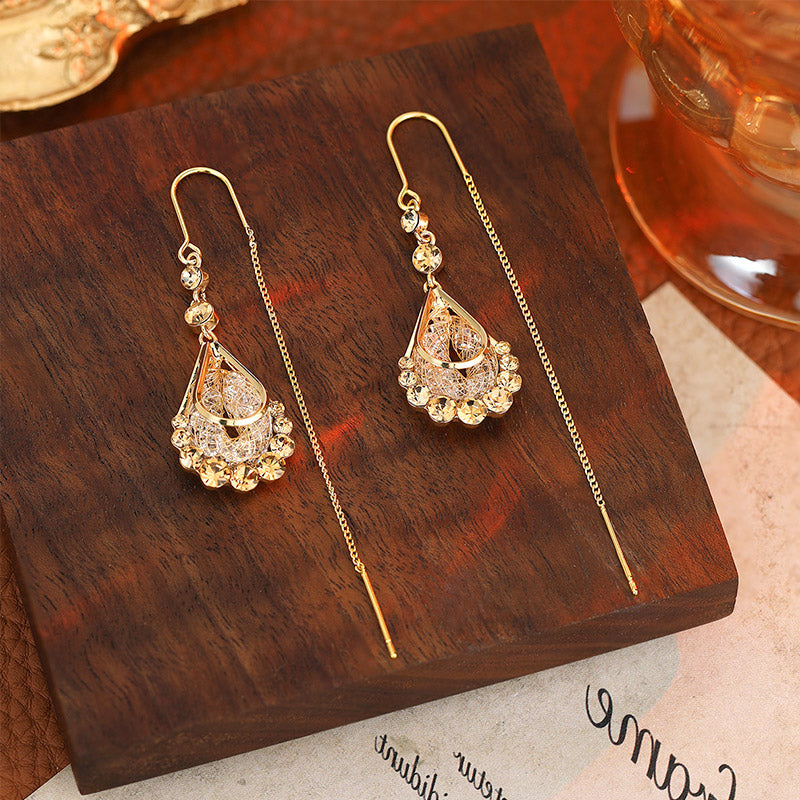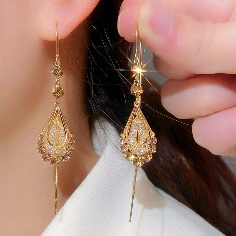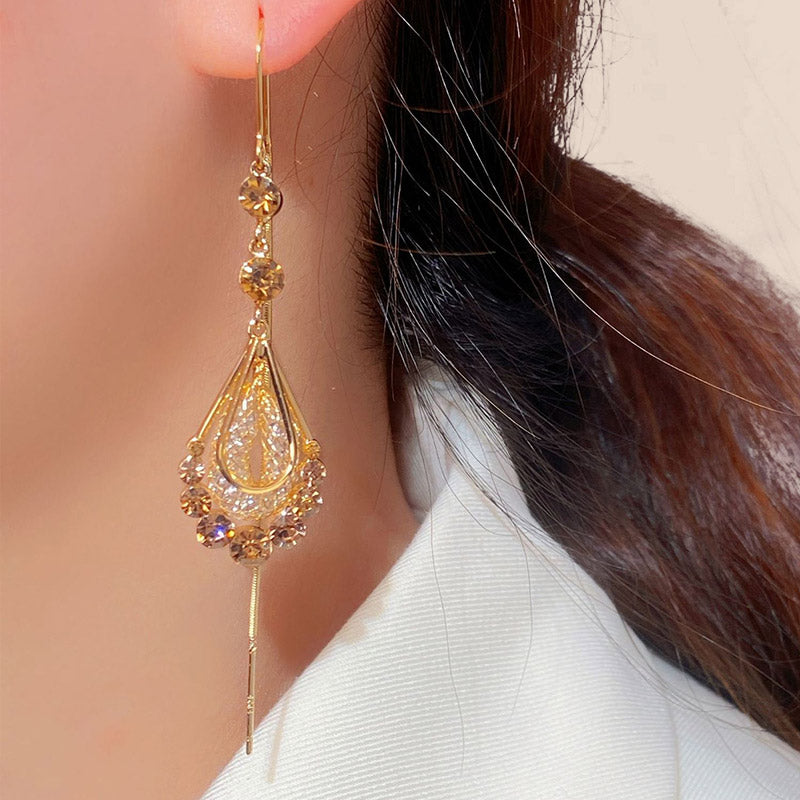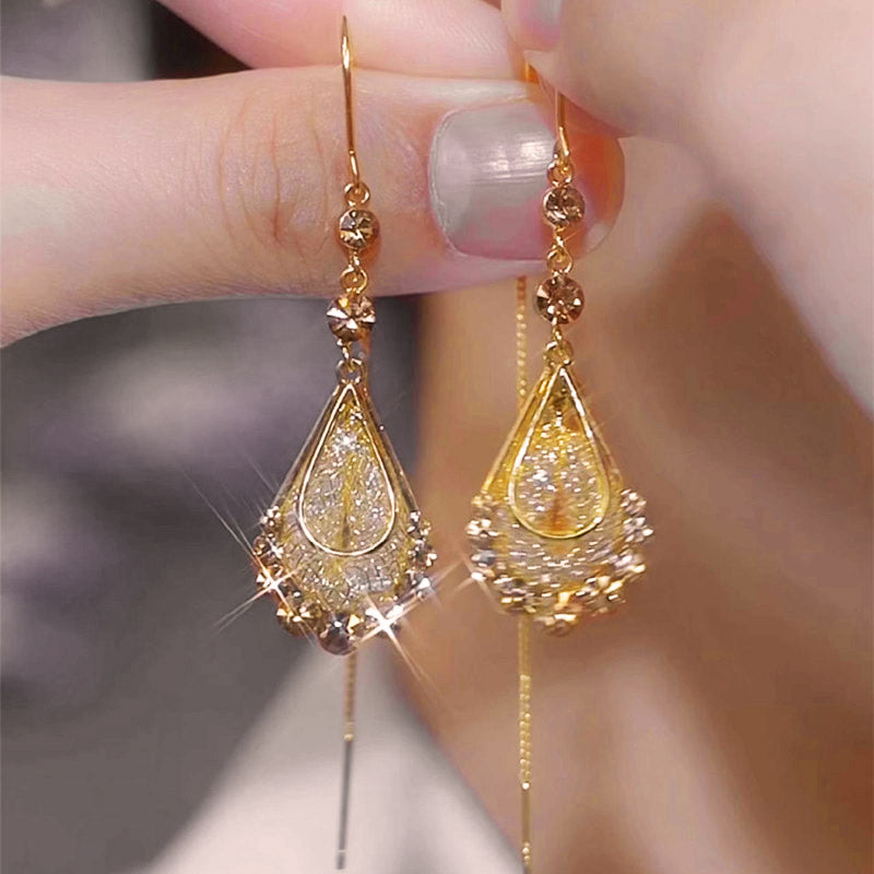 Design elegant în formă de lacrimă: Cerceii în formă de lacrimă pentru femei cu pietre prețioase au un design elegant și izbitor, cu o formă rafinată de lacrimă care încadrează frumos fața, adăugând o notă de eleganță oricărei ținute sau ocazii.