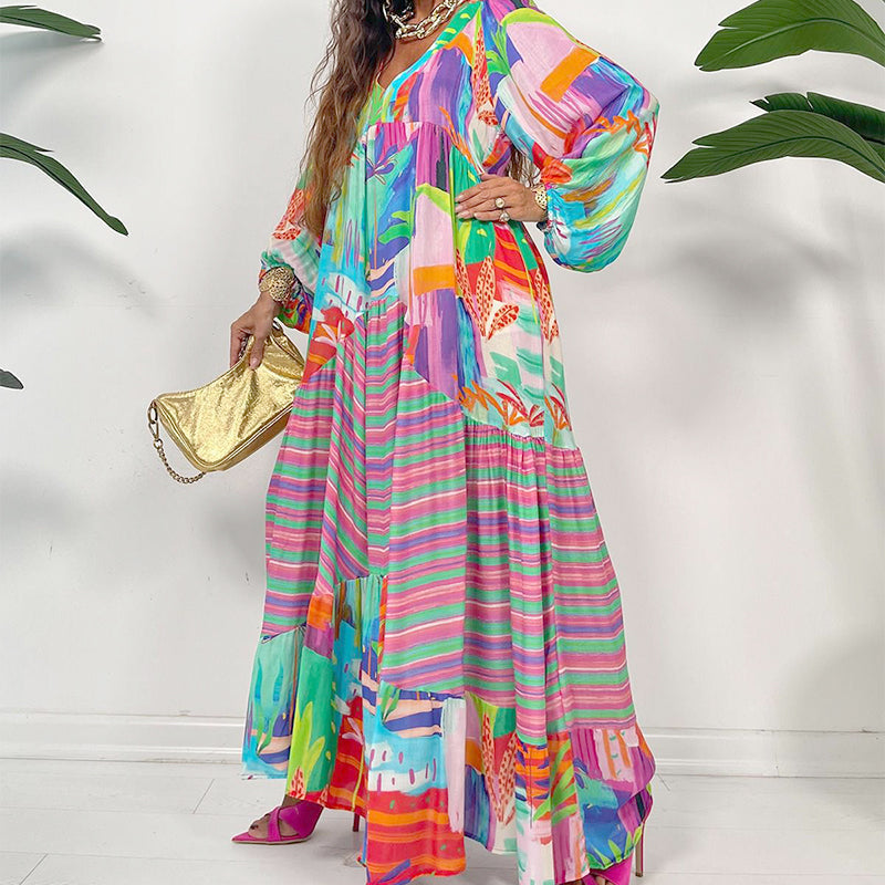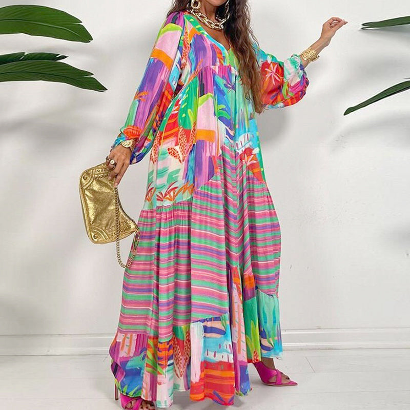 Îmbunătățește-ți stilul cu rochia noastră maxi cu decolteu în V și imprimeu floral. Această rochie uimitoare este concepută pentru a face o declarație, având un decolteu în V flatant și un imprimeu floral vibrant. Silueta fluidă și feminină este perfectă pentru orice ocazie, de la ieșiri casual la evenimente speciale. Fabricată din materiale de înaltă calitate, această rochie oferă confort și durabilitate. Cu designul său versatil și modelul floral la modă, este un accesoriu must-have pentru garderoba ta.