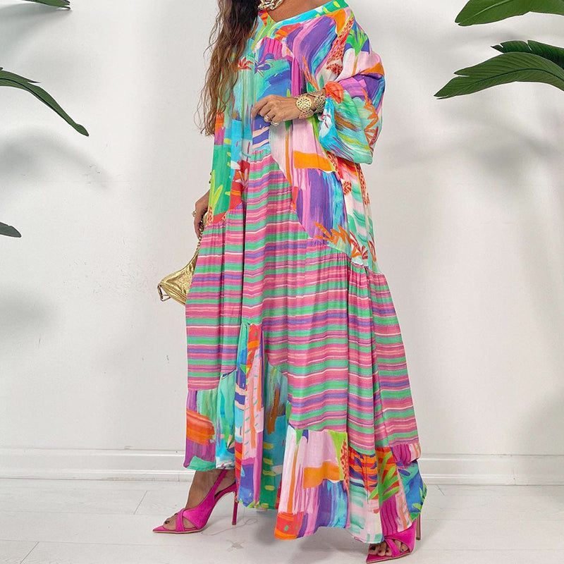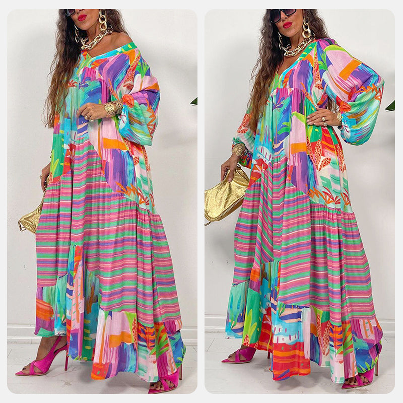 Adăugați o notă de farmec și eleganță garderobei dvs. cu rochia noastră maxi cu imprimare florală, cu decolteu în V. Este alegerea perfectă pentru femeile avide de modă care apreciază stilul și confortul. Comandați-o pe a dvs. astăzi și bucurați-vă de sofisticare fără efort oriunde ați merge.