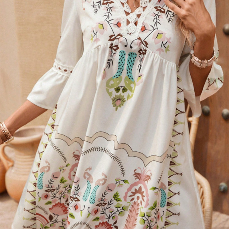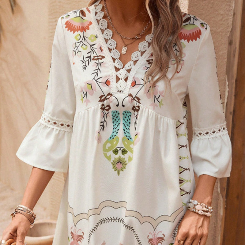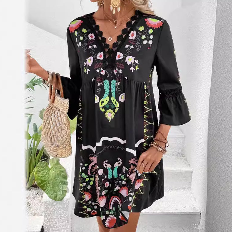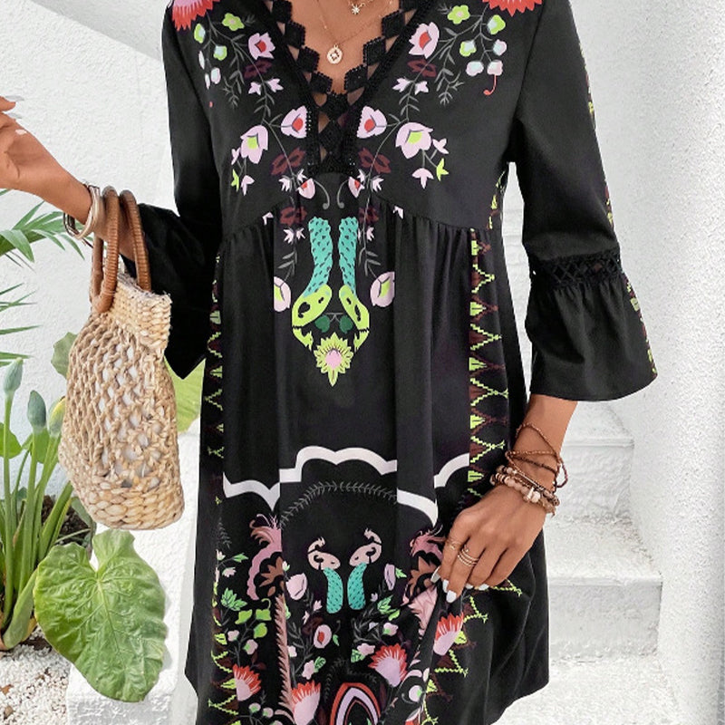 Pachetul include: 1 1 * V-Neck Lace Accent Printed Dress