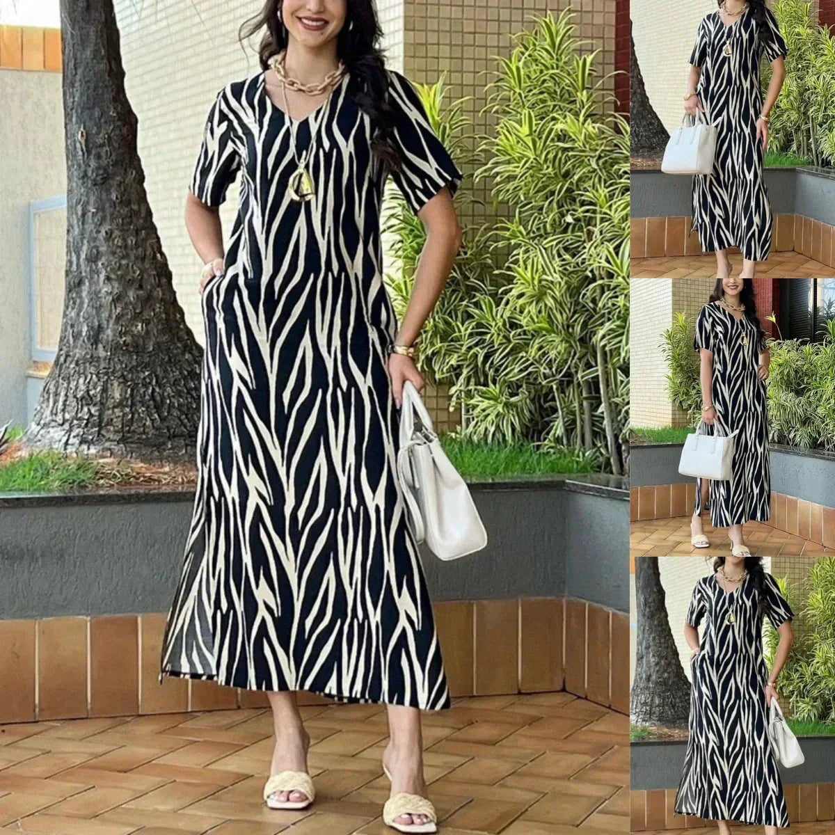 DECOLTEU V CHIC: Designul trendy cu decolteu în V vă pune în valoare decolteul și oferă o siluetă măgulitoare. Această rochie este atât elegantă, cât și confortabilă, oferind un aspect trendy, dar atemporal.