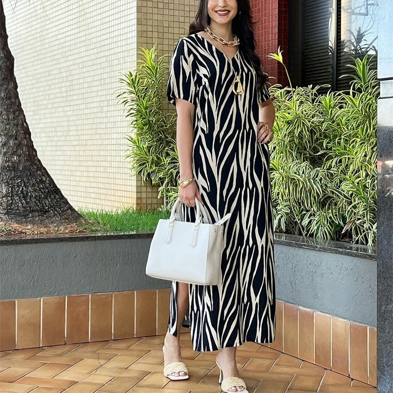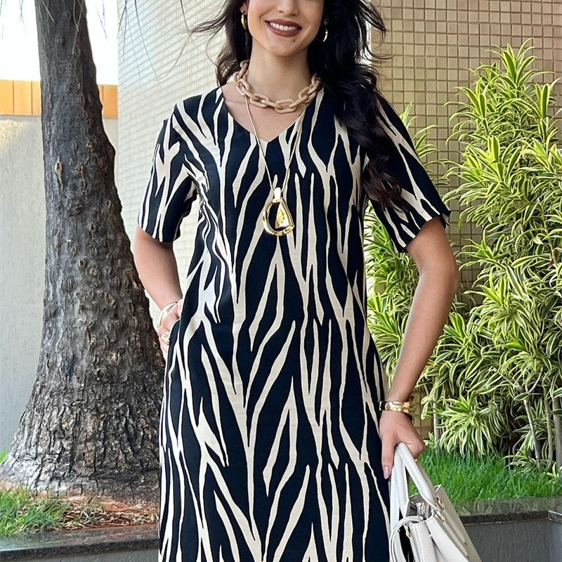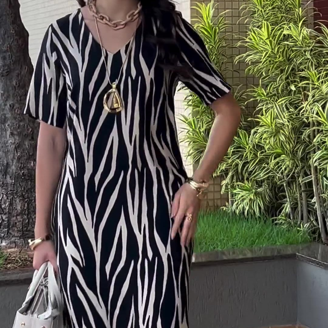 💖Rochie imprimată cu decolteu în V, cu fantă laterală, pentru femei🌹