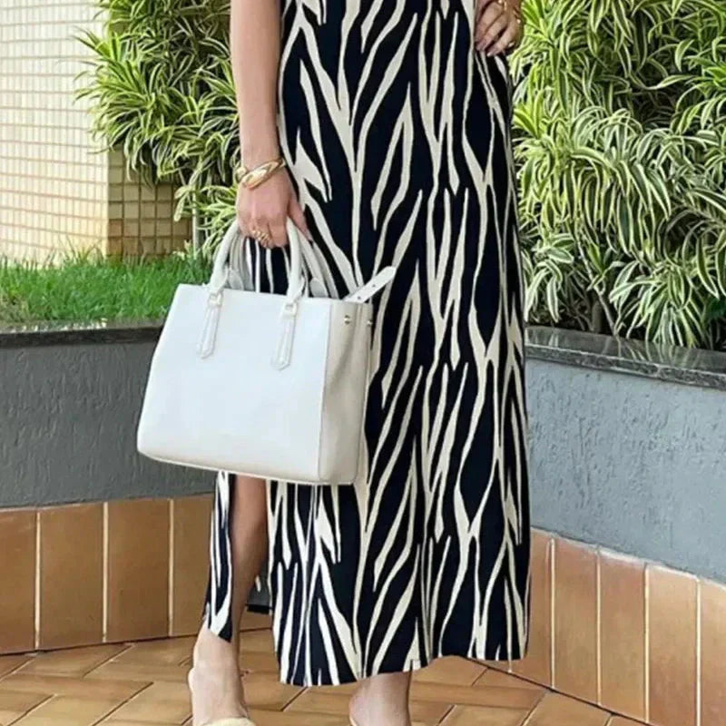 IMPRESIE GEOMETRICĂ ȘI DESIGN COLOR-BLOCK: Cu o imprimare geometrică elegantă combinată cu un model color-block îndrăzneț în alb și negru, această rochie face o declarație. Oferă un aspect contemporan, șic, perfect pentru purtarea de zi cu zi.
