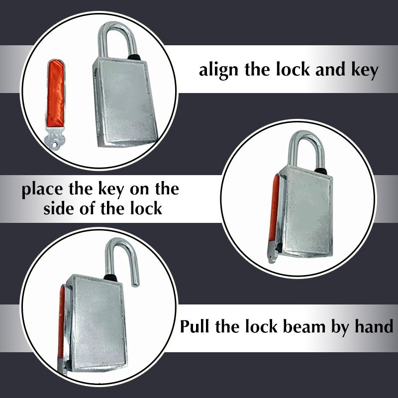 DEBLOCARE FĂRĂ EFORT: Conceput pentru a fi ușor de utilizat, aliniați pur și simplu încuietoarea și cheia, puneți cheia pe partea laterală a încuietoarei și trageți de manșetă. Acest proces simplu de deblocare asigură confort și eficiență în securizarea și accesarea articolelor dvs.