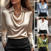 ✨Cămăși cu guler drapat de culoare solidă pentru femei