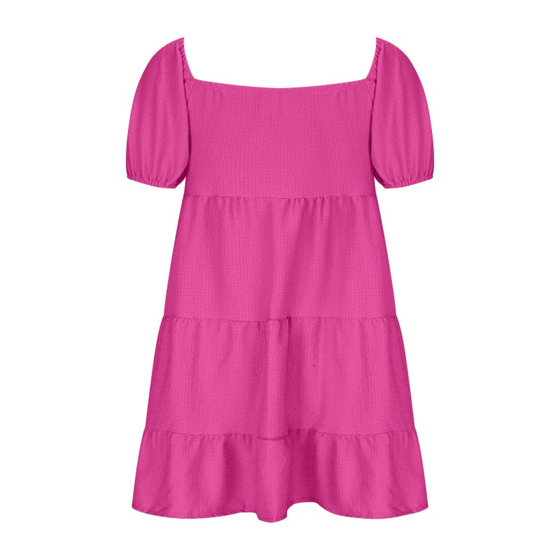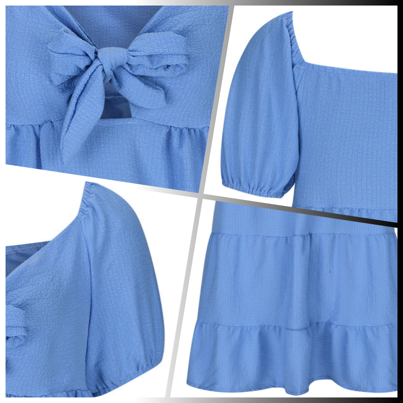 DECUPAJ ELEGANT:Cu un detaliu chic de decupaj frontal cu o fundă decorativă, această rochie adaugă o notă cochetă și atrăgătoare look-ului tău de vară.