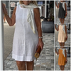 Rochie fără mâneci cu gât rotund din bumbac și in pentru femei