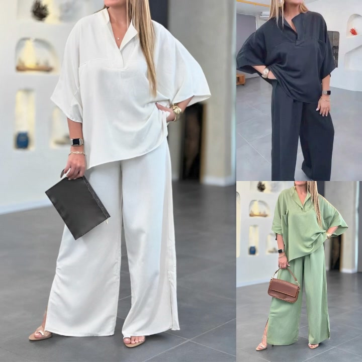 ✨Eleganța este atât de simplă💃Top din două piese pentru femei și pantaloni cu picioare largi