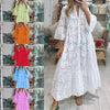 ELEGANȚĂ A TIMPULUI - Această rochie maxi fluidă emană un aspect rafinat și sofisticat cu decolteul său clasic în V și detaliile cu ochiuri fine, ceea ce o face o alegere versatilă pentru o varietate de ocazii.