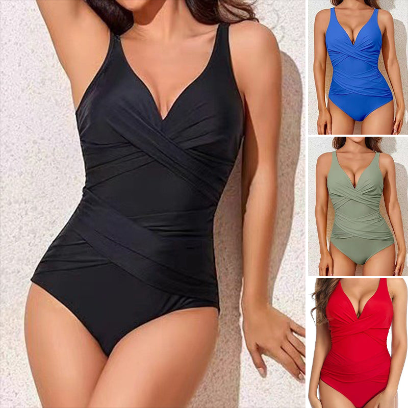 DETALII CROSSOVER - Un detaliu cu pliuri încrucișate deasupra și sub talie adaugă o dimensiune subtilă. Acesta accentuează secțiunea mediană, ajutând la crearea unei talii mai subțiri. Acest element de design unic diferențiază costumul de baie de modelele de bază, adăugând o notă rafinată.