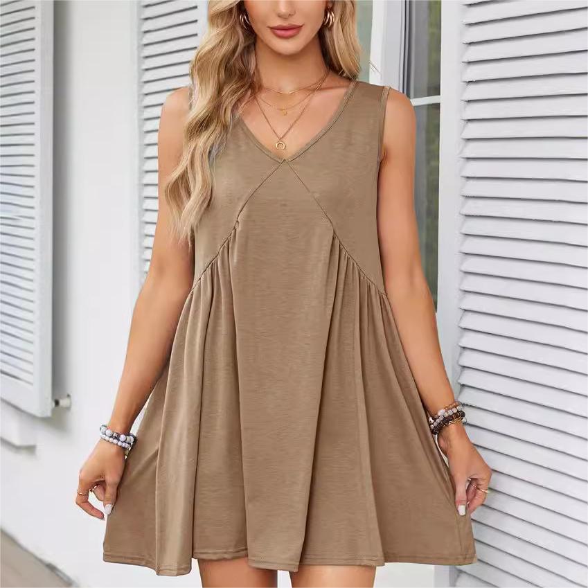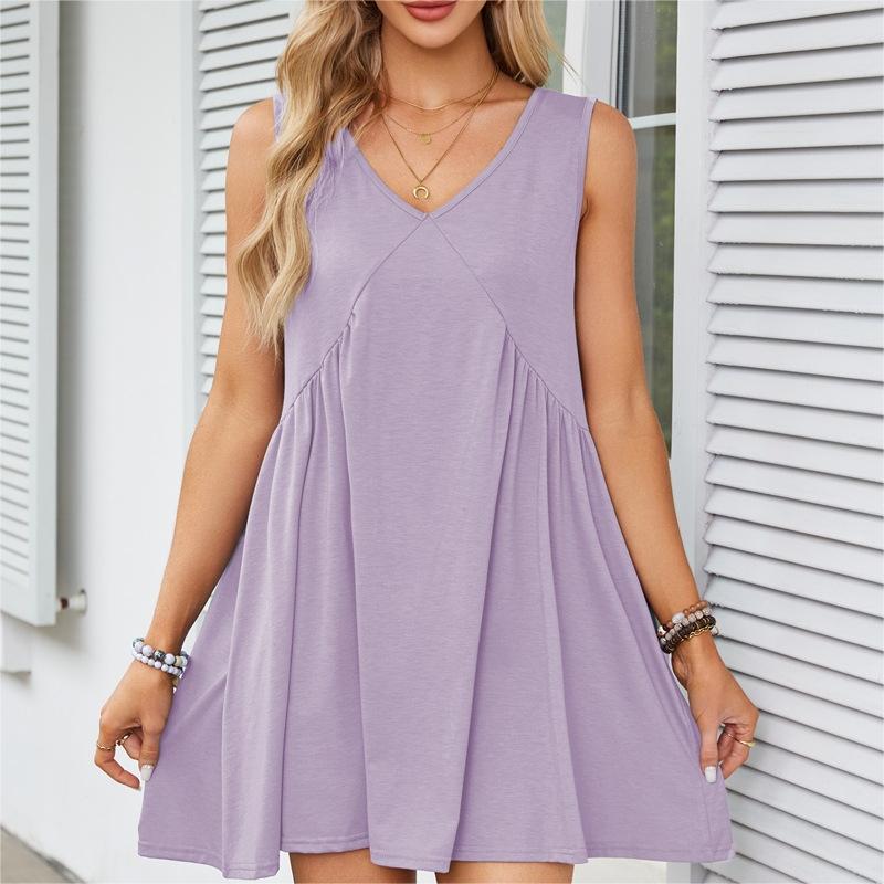 1 * Rochie plisată lejeră fără mâneci cu gât în V pentru femei