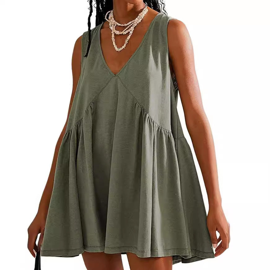 💗Women's V-Neck Sleeveless Vest Loose rochie plisată👗