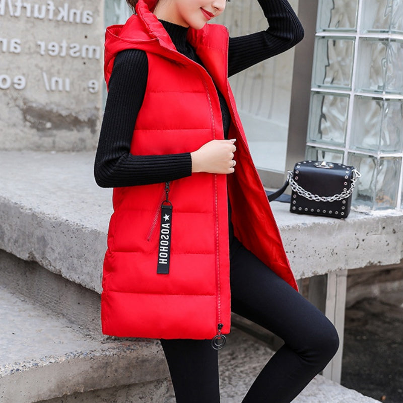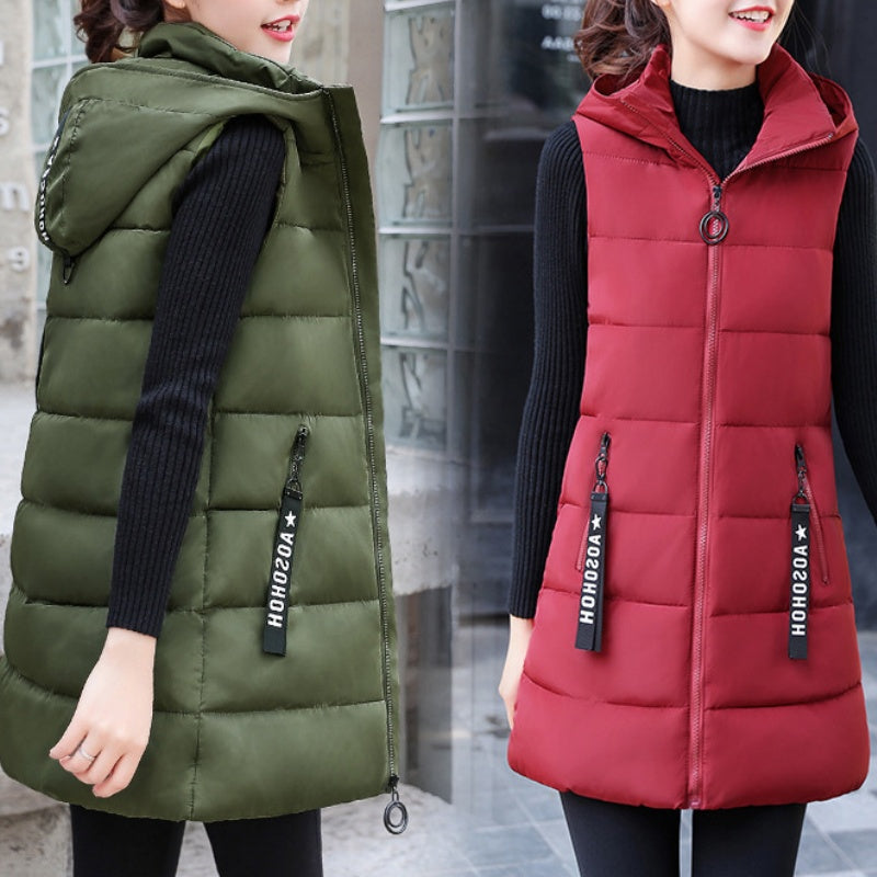 Vestă lungă fără mâneci cu fermoar și căptușeală din bumbac pentru femei