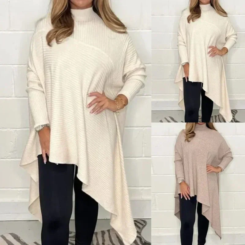 Pachetul include: 1 * Ladies Casual Knit Solid Unregular Turtleneck Sweater