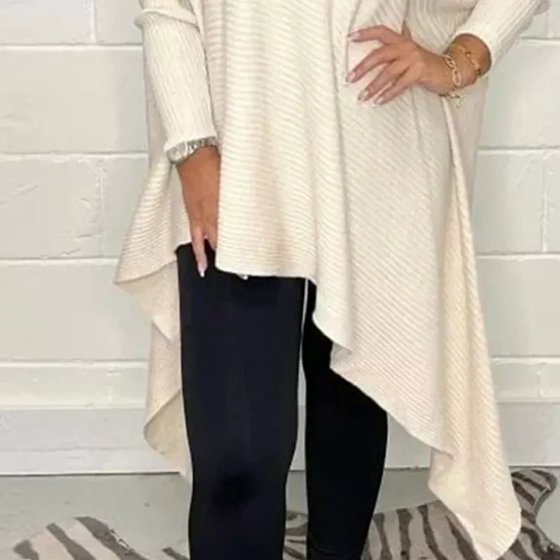 HEM UNREGULAR: Cu tivul său distinctiv, neregulat, acest pulover va adăuga un fler modern și artistic ținutei tale. Tăietura asimetrică creează o siluetă dinamică care se drapează frumos și adaugă un element unic garderobei tale.